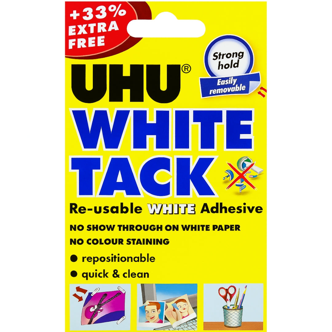 Secure, stick, and reposition with ease using UHU White Tack 65g + 33% Extra Free, a clean and reusable adhesive perfect for posters, photos, decorations, and lightweight objects. Unlike pins or tape, it won’t damage surfaces and is ideal for use on walls, windows, and other non-porous surfaces. The soft, pliable formula allows for easy shaping and removal, making it a versatile solution for home, school, or office use. With 33% extra free, you get even more value in every pack.