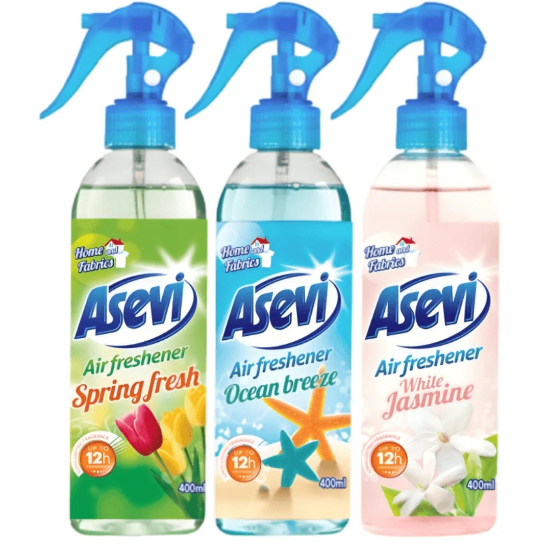 Refresh your space with Asevi Air Freshener Breeze 400ml. This long-lasting fragrance eliminates odors and fills your home with a clean, uplifting breeze scent. Perfect for any room, it delivers instant freshness with every spray.