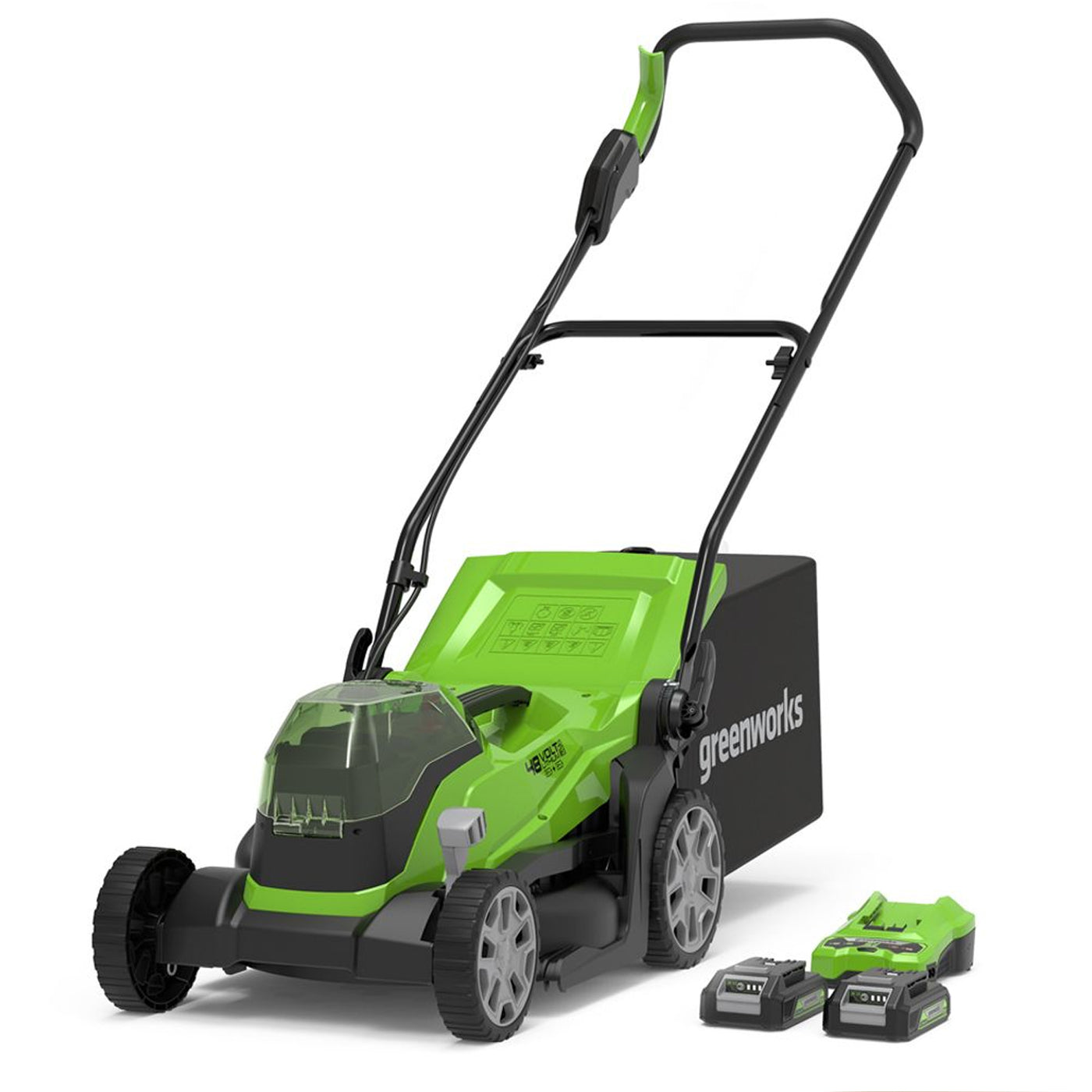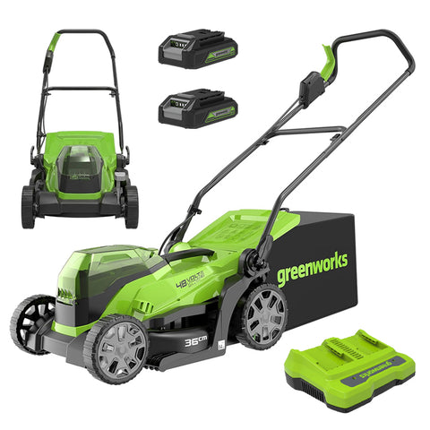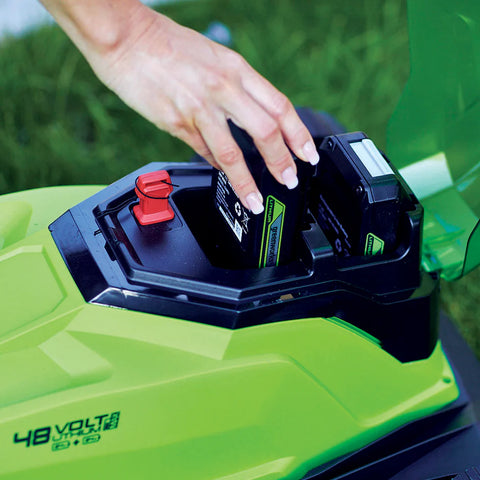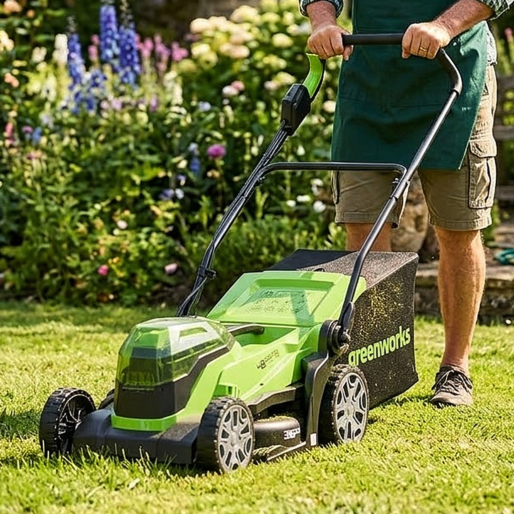 Upgrade your garden care with the GreenWorks 48V cordless mower. By combining two 24V batteries, this machine delivers the high-performance power of a 48V motor with the lightweight convenience of a compact mower. No petrol, no pull cords, and no maintenance—just clean, quiet, and efficient mowing.