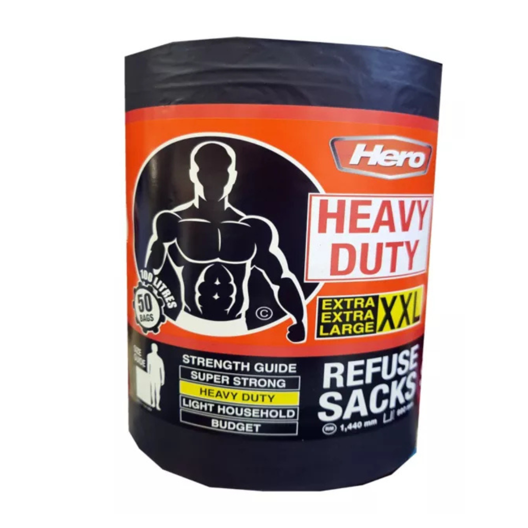 Tackle tough waste disposal with HERO Heavy Duty 100L Refuse Sacks. This pack of 50 extra-strong trash bags is designed to handle heavy loads, making them perfect for household, garden, or industrial use. With a 100-litre capacity, these durable sacks offer superior resistance to tearing and puncturing, ensuring secure and reliable waste management for all your cleaning and disposal needs. Ideal for everyday use or heavy-duty tasks.