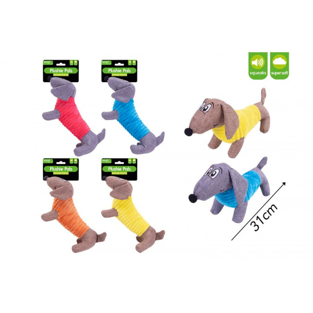 Delight your furry friend with our Plush Dachshund Dog Toy featuring an entertaining squeak. This adorable, soft toy is designed to look like a charming dachshund, making it both a cuddly companion and an engaging plaything. The built-in squeaker stimulates your pet’s natural instincts, encouraging active play and interactive fun. Made from high-quality plush material, it's gentle on your dog's teeth and gums while providing hours of enjoyment. Perfect for fetch, snuggling, or solo play, this plush dachshund toy is a great addition to your pet’s toy collection.