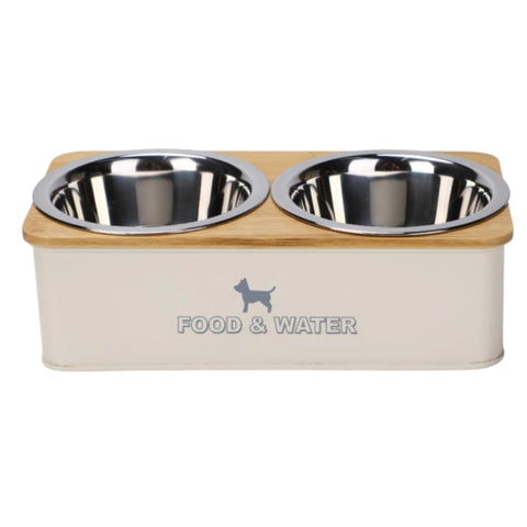 Make feeding time easier and more comfortable with the Small Cream Pet Dog Food & Water Stand Diner. Designed to raise bowls slightly off the floor, it helps support better posture for small dogs and reduces strain on their neck and joints. The sturdy stand keeps food and water bowls secure to help minimise spills, while the soft cream finish adds a stylish touch to your home. Practical, neat, and pet-friendly — perfect for smaller breeds and puppies.Size: Small; 25.5cm (L) x 13cm (W) x 7cm (H) (Each Bowl Diamater 13cm)