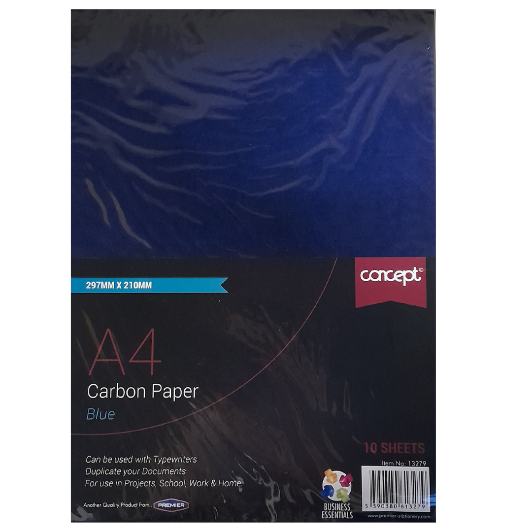 The Premier Office A4 Carbon Paper in blue is designed for creating duplicate copies of handwritten or typewritten documents. Each pack contains 10 A4-sized sheets (297mm x 210mm). This carbon paper is suitable for use with typewriters and is ideal for various settings, including home, office, and school.