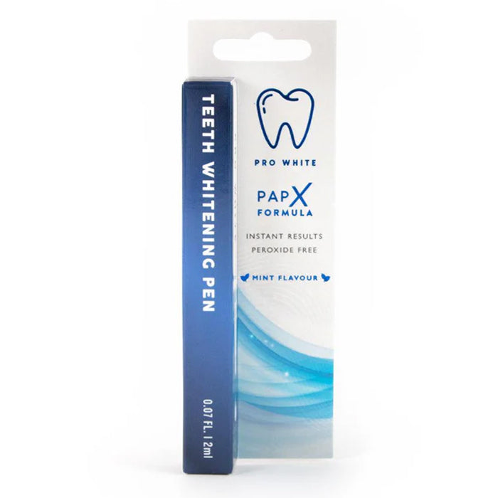 The Pro White PAP-X Teeth Whitening Pen is a vegan-certified, peroxide-free teeth whitening solution designed for quick and convenient use. Utilizing the latest PAP-X formula, it offers a safe alternative to traditional peroxide-based whiteners. The pen is compact and travel-friendly, making it ideal for on-the-go touch-ups. It works by applying a thin layer of gel to the teeth, which dries within a minute, allowing for immediate results without causing sensitivity.