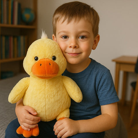Introducing the 12-Inch Plush Duck, the perfect companion for cuddles and imaginative play! This soft and adorable stuffed animal features a huggable design with a plush exterior that's gentle on little ones. With its charming yellow feathers and friendly expression, this duck is ideal for children of all ages. Whether used as a comforting bedtime buddy or a playful addition to any toy collection, this plush duck is crafted for durability and endless snuggles. Bring joy and comfort to your child's day with this delightful 12-inch plush duck