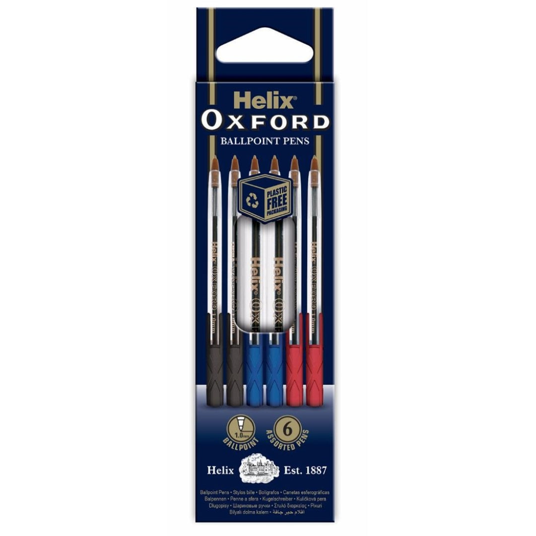 Discover reliable writing with the Helix Oxford 6PK Assorted Ballpoint Pens, featuring a selection of classic ink colors ideal for school, office, or home use. Each pen is equipped with a medium 1.0 mm tip, delivering smooth, precise lines and minimal smudging. Lightweight barrels are designed for comfort and ease of use, reducing hand fatigue during long writing sessions. Vivid ink performance and consistent flow make them perfect for tasks like note-taking, color-coding, or journaling. With practical design and dependable quality, this set is a must-have addition to any stationery collection.