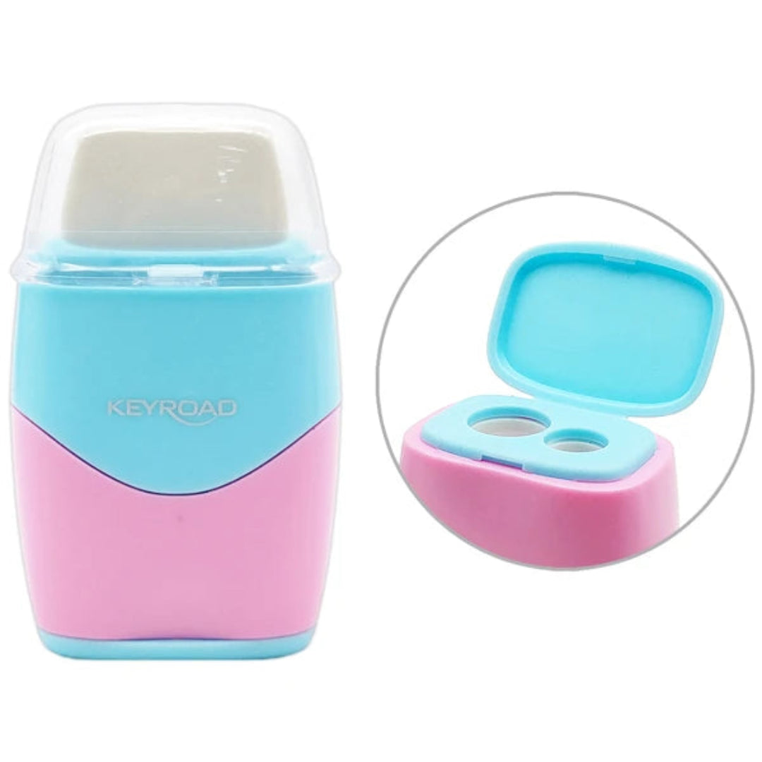 The Keyroad Pastel 2-Hole Sharpener & Eraser is a stylish and practical stationery set that includes a dual-function sharpener and an eraser, perfect for students, artists, and professionals alike. Designed with soft pastel colors, this set adds a touch of personality to your desk or pencil case while providing reliable, everyday performance. Whether you're sharpening your pencils or correcting mistakes, this compact set has you covered.