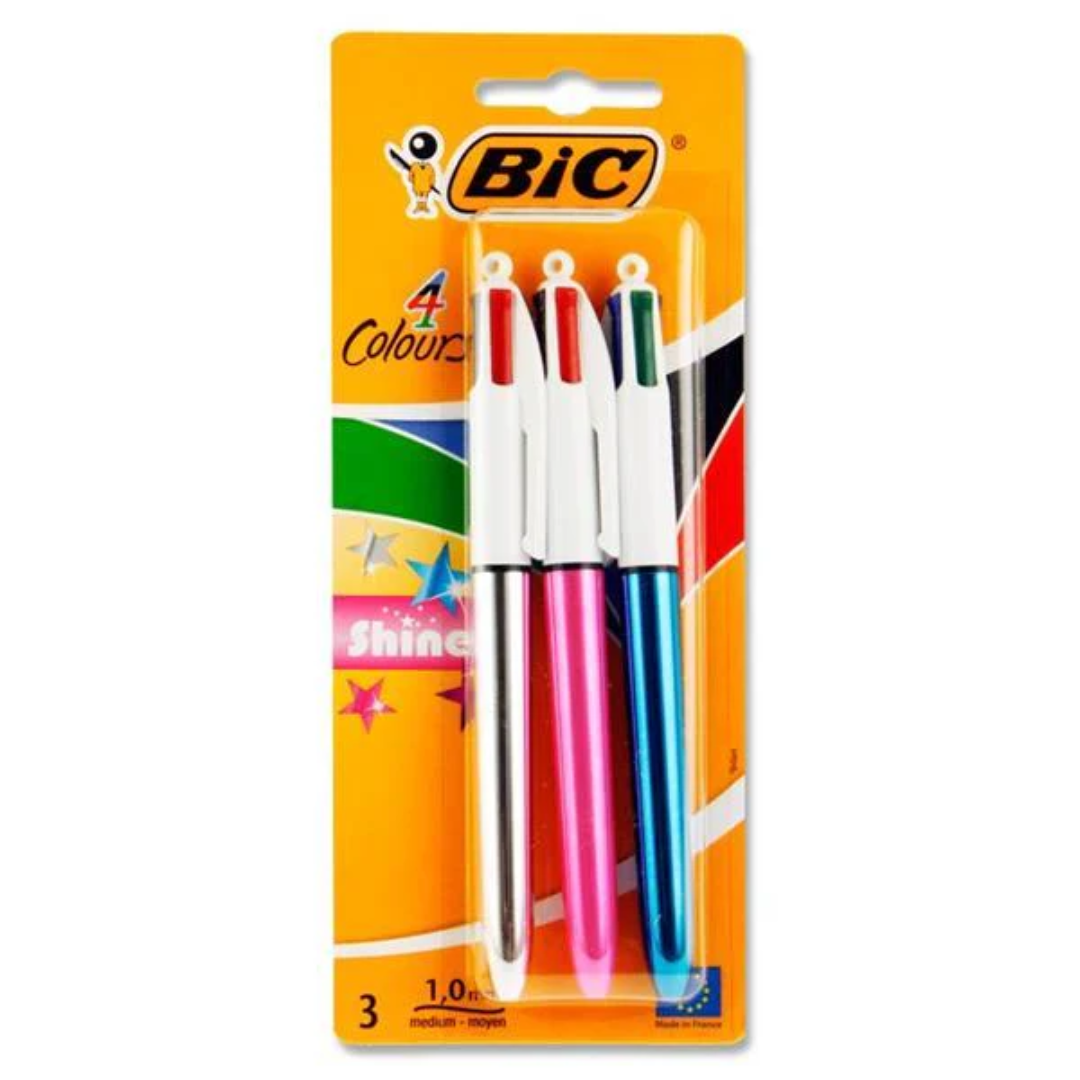 Don't settle for ordinary pens – elevate your writing game with the 3-Pack Bic 4Colour Shine Ballpens today!