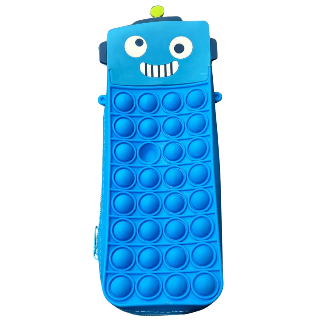 Make learning playful with this Robot Pop It Fidget Pencil Case! Featuring a bright blue design with a cheerful robot face, this soft silicone case doubles as a pop-it sensory toy—perfect for stress relief, focus, and fun on the go. With a durable zip closure, it's ideal for storing pens, pencils, erasers, and other school essentials. Great for home, school, or travel, this fidget pencil case is a must-have for kids who love interactive and functional stationery.