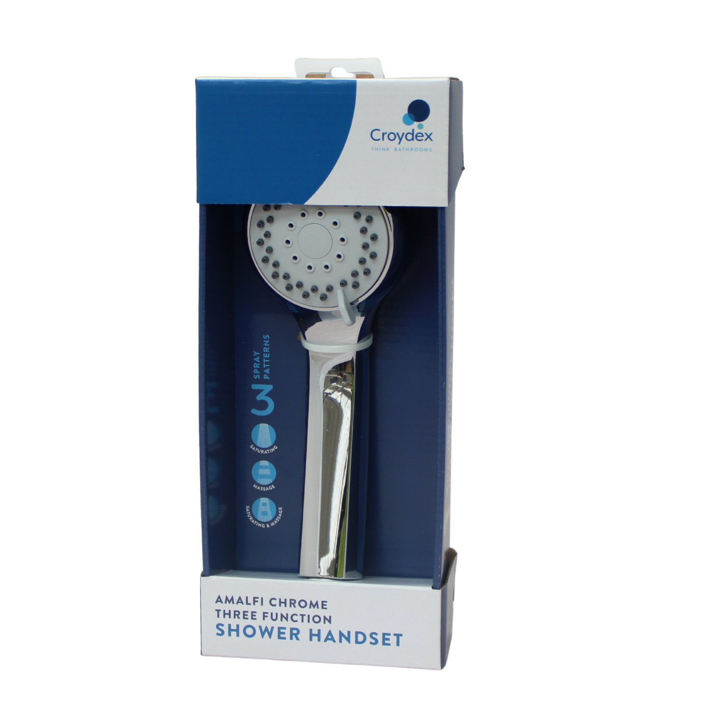 Upgrade your bathroom experience with the Amalfi 3-Function Chrome Shower Handset, designed to offer custom comfort with three adjustable spray settings – Rainfall, Massage, and Mixed. Its sleek chrome finish adds a modern touch to any bathroom décor, while the universal connection makes installation quick and hassle-free. Compatible with most standard hoses, this lightweight, easy-to-clean shower head delivers consistent water pressure and style. Perfect for refreshing your daily shower routine with a touch of luxury and functionality.