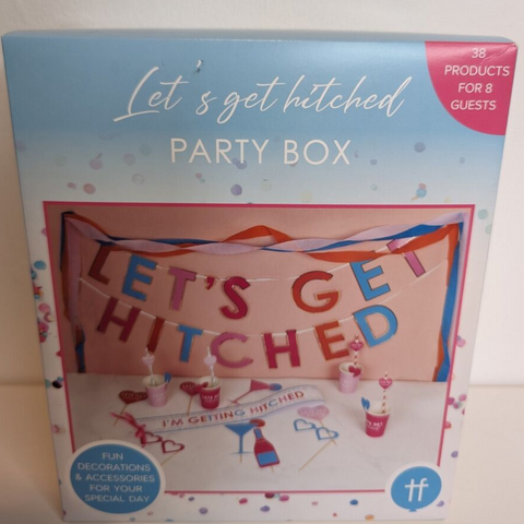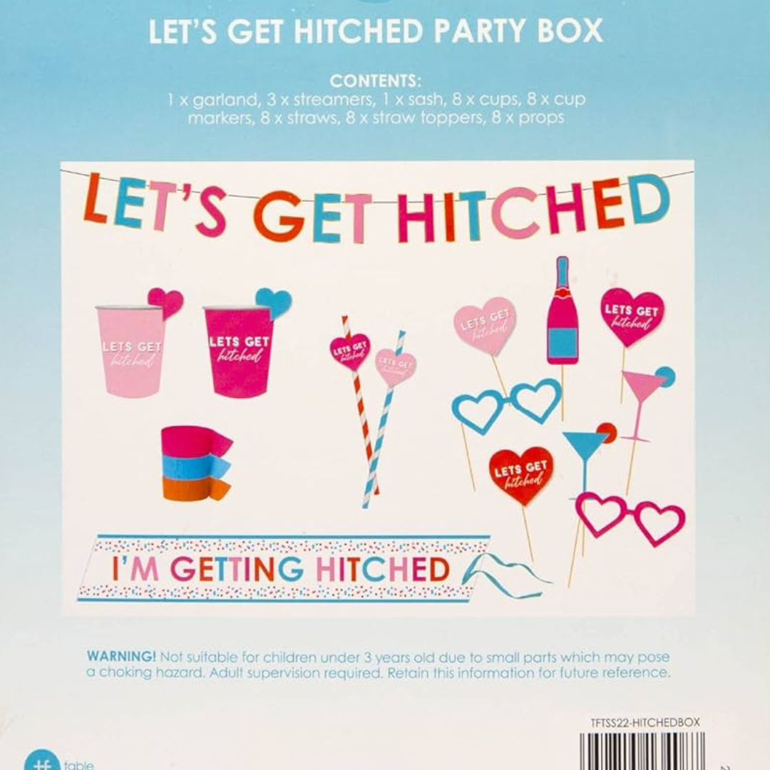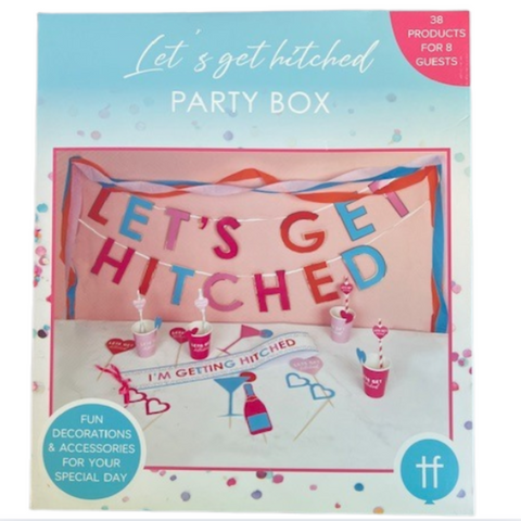 Make your celebration unforgettable with the Let’s Get Hitched Party Box! This all-in-one party kit is perfect for engagement parties, bridal showers, and pre-wedding festivities. Packed with everything you need to create a fun and stylish atmosphere, this party box includes decorations, party favors, and other essential supplies to get the party started. Whether you're celebrating with friends, family, or your bridal party, the Let’s Get Hitched Party Box will help you set the perfect tone for your special event.