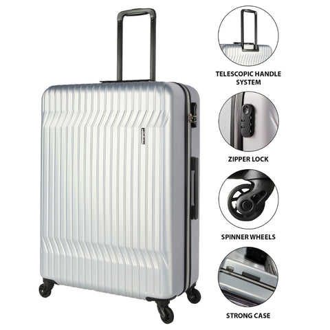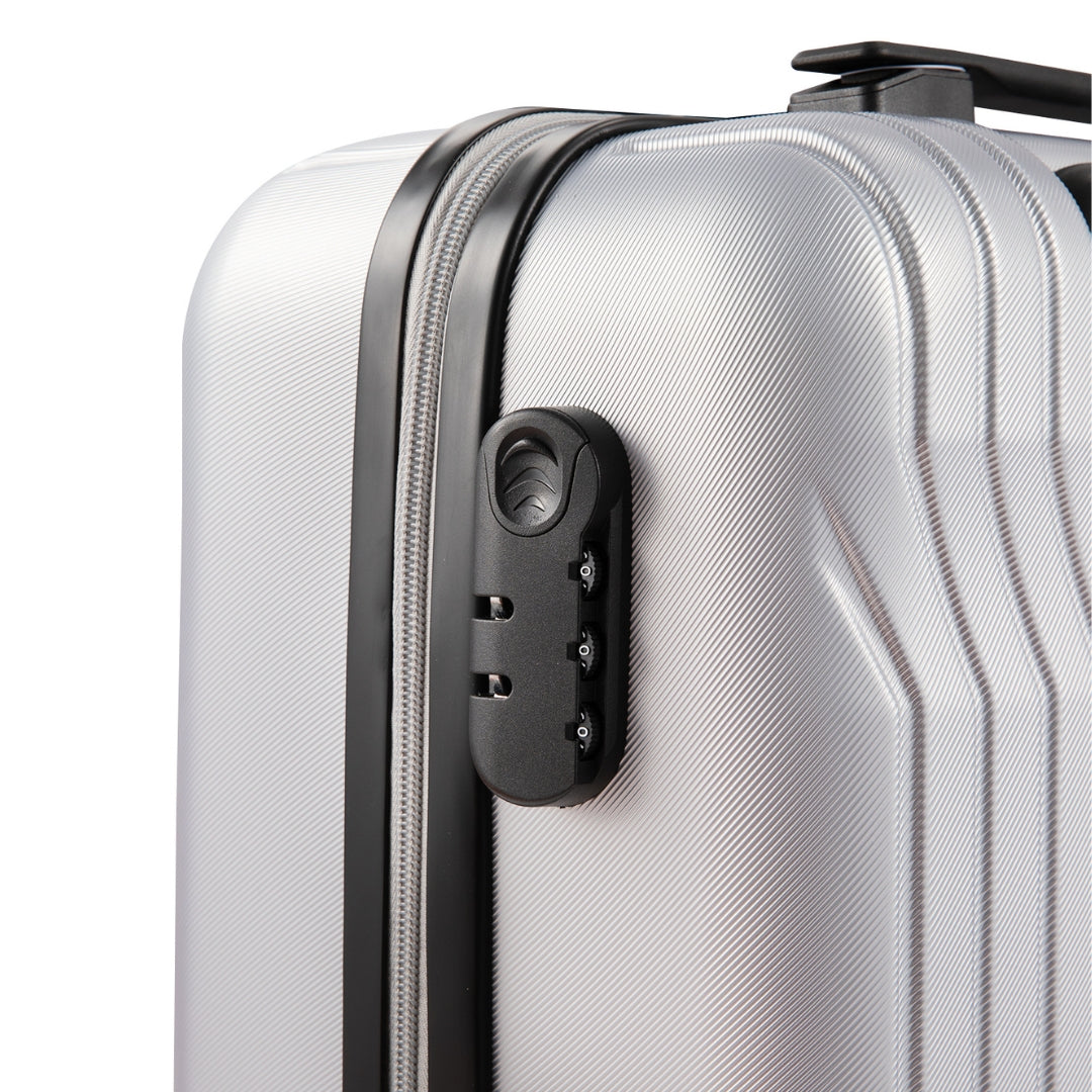 Travel in style with the 3-Piece ABS Silver Suitcase Set, designed for durability, security, and ease of movement. With three versatile sizes, this set is perfect for short trips, long vacations, and business travel.