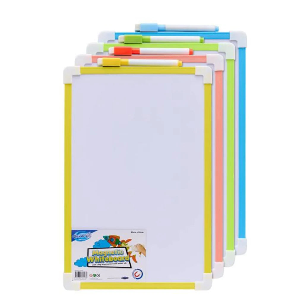 The Clever Kidz Magnetic Whiteboard 20x30cm is the perfect tool for creative learning, organizing, and fun activities. Ideal for kids, students, or anyone who loves to stay organized, this magnetic whiteboard offers a versatile surface for drawing, writing, or sticking notes and reminders. Whether used at home, school, or in the office, this whiteboard provides a durable, interactive space for endless creativity.