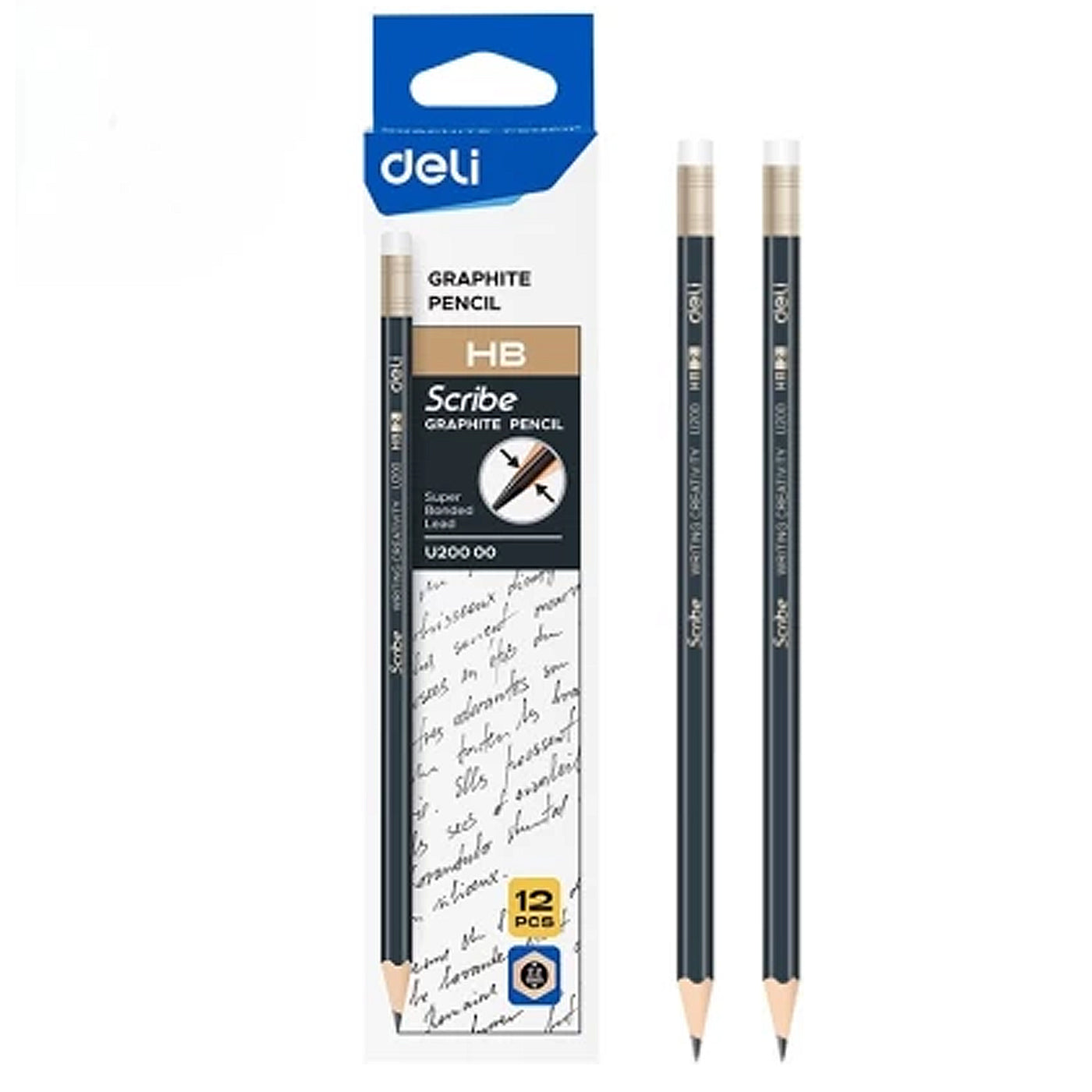 Deli Graphite HB Pencil U200 00 – A pack of 12 high-quality HB pencils featuring a hexagonal barrel for a comfortable grip. Crafted from poplar wood, these pencils are easy to sharpen and provide smooth, consistent writing. Each pencil includes a non-toxic, PVC-free eraser, making them ideal for students and professionals alike. The dark blue color adds a touch of style to your stationery collection.