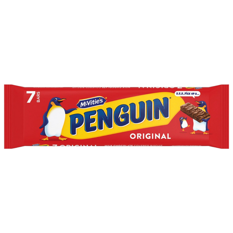 Treat yourself to the McVities Penguin Milk 7-Pack, a perfect combination of a crunchy biscuit and smooth, creamy milk chocolate. Each pack contains seven individually wrapped biscuits, making them easy to enjoy at home, work, or on-the-go. The classic McVities Penguin bars offer a delightful blend of crisp biscuit layers with a milk chocolate coating and a creamy chocolate filling, all packed into one satisfying snack. Whether you're looking for a quick pick-me-up or a snack to share, McVities Penguin Milk bars are sure to please.