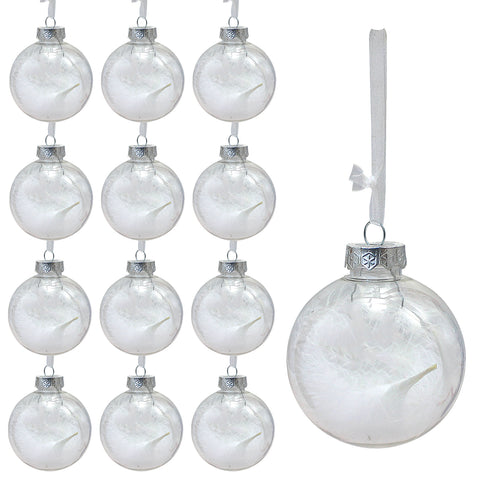 Add a soft, elegant touch to your festive décor with the Pack of 12 Nordic Encapsulated Feather Baubles. Each bauble features delicate feathers gently sealed within a clear globe, creating a light, airy, and serene holiday look. The minimalist Nordic design blends beautifully with modern, white, or rustic Christmas themes. Lightweight and shatter-resistant, they’re perfect for hanging on trees, garlands, or seasonal displays. Bring a sense of calm and sophistication to your holiday styling with these graceful feather-filled ornaments.