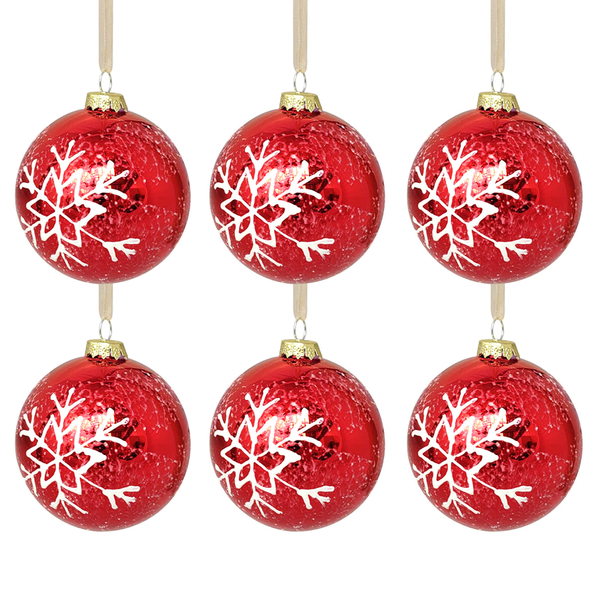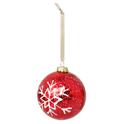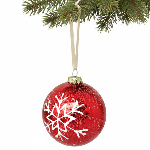 Add timeless elegance to your holiday décor with this Pack of 6 Perennial Red Glass Baubles, each adorned with a delicate white snowflake motif. Crafted from beautiful red-tinted glass, these ornaments capture the classic spirit of Christmas with a refined finish that sparkles under the lights.