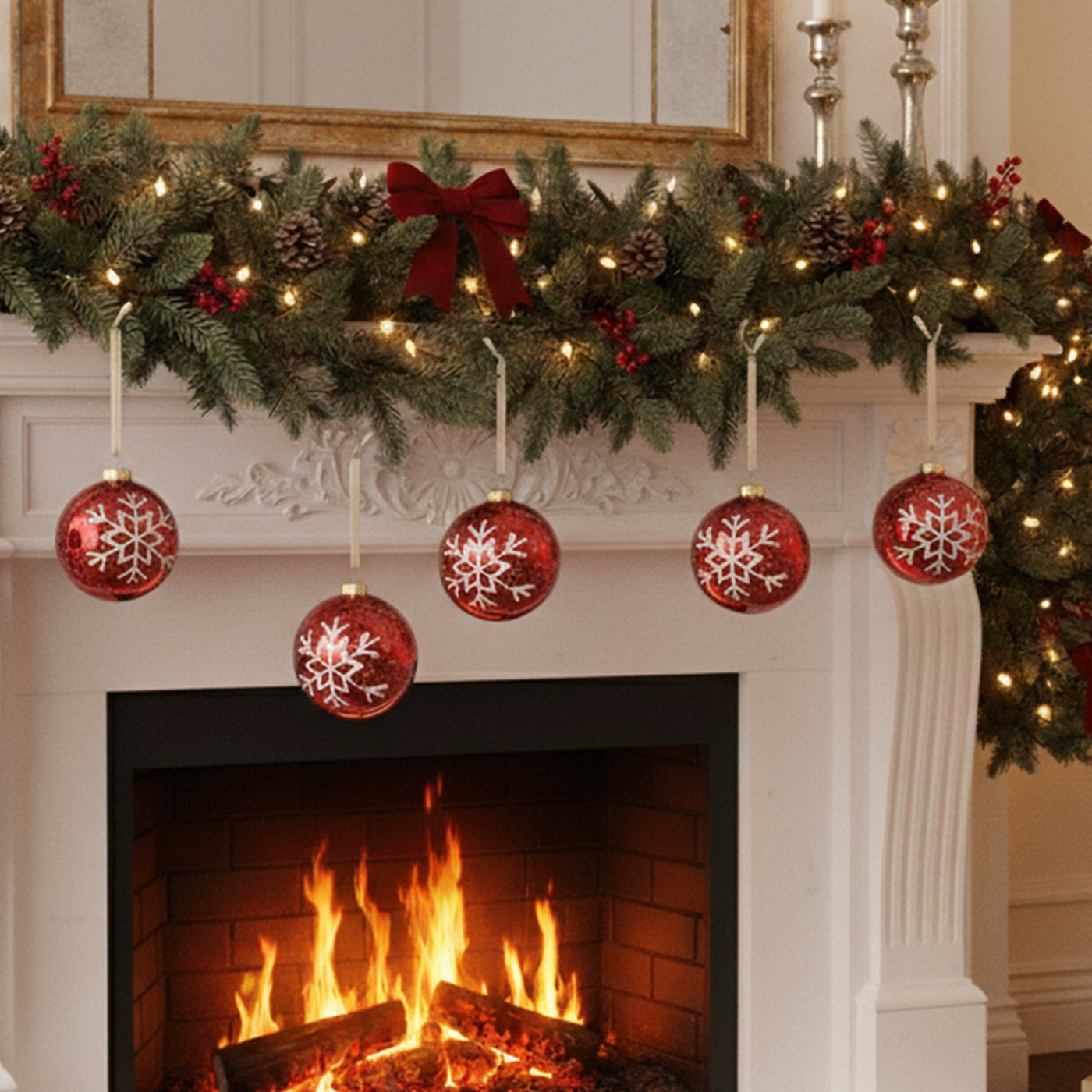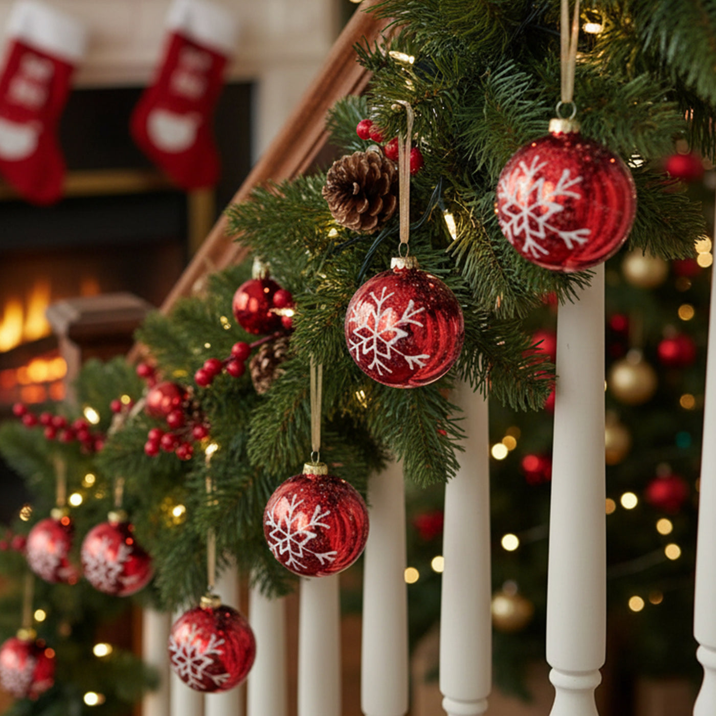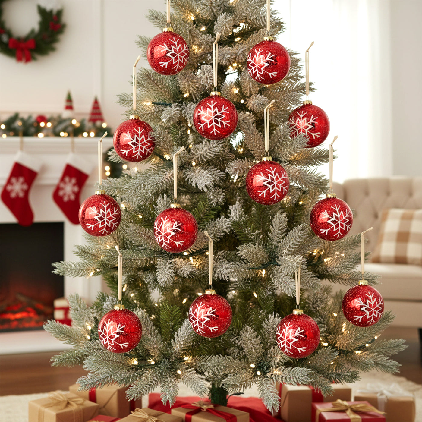 Ideal for traditional tree themes or enhancing a festive red-and-white color scheme, each bauble includes a gold or silver hanging loop for effortless decorating. Whether displayed on your tree, in a wreath, or as part of a centerpiece, these baubles bring warmth and charm to any holiday setting.