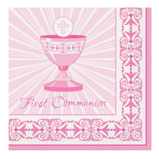 Pink Holy Communion Napkin w/Chalice pack of 16