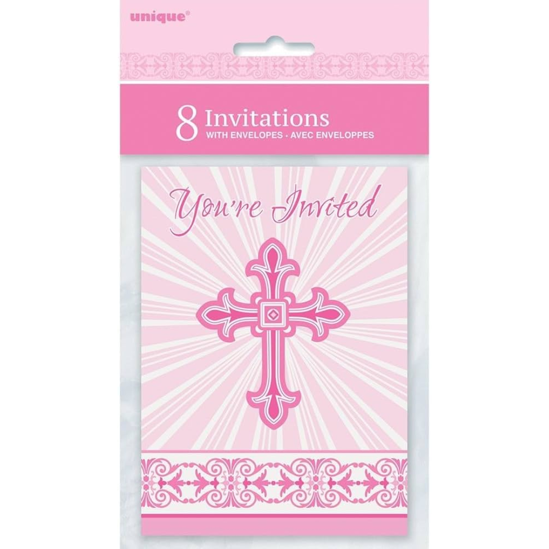The Holy Communion Pink Invite Envelopes (Pack of 8) are elegantly designed to complement your special occasion invitations. Crafted with a soft pink color, these envelopes exude a gentle and serene vibe, making them perfect for a First Communion celebration. The premium quality paper ensures durability and a smooth, sophisticated feel. The envelopes are sized to fit standard invitations, providing a secure and stylish way to present your event details. Ideal for anyone seeking to add a personal, graceful touch to their Holy Communion invitations.