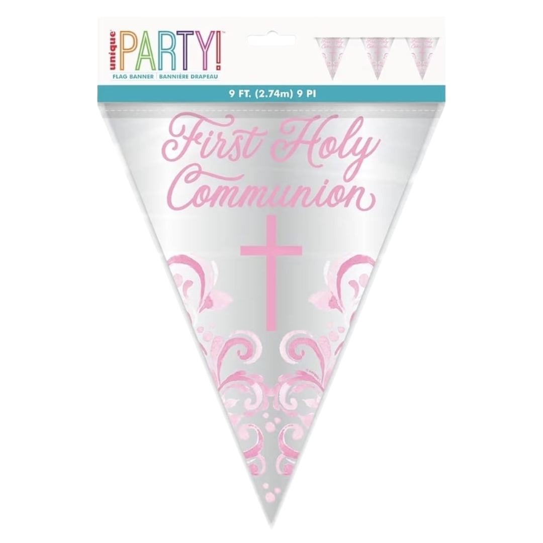 Pink Communion Foil Flag Banner 9ft Sale