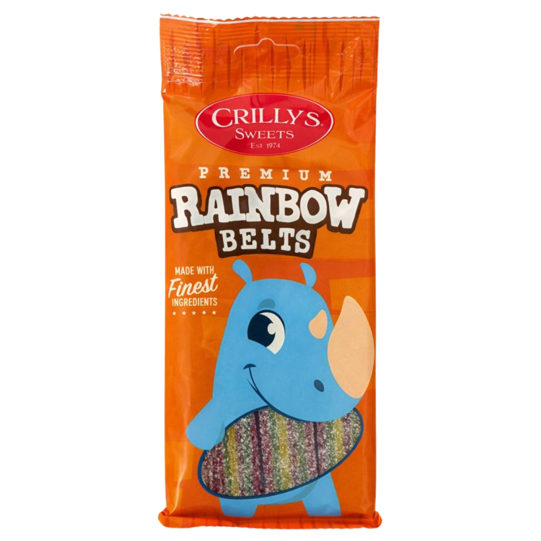 BBE : 05/2026Brighten your day with Crillys Rainbow Belts 100g, a colourful and chewy sweet bursting with fruity flavour. These vibrant rainbow belts offer a fun combination of sweetness and tanginess, making them a favourite for sharing, parties, or enjoying as a treat on the go. Packed in a handy 100g bag, they’re perfect for movie nights, lunchboxes, or satisfying sweet cravings. Fun, flavourful, and irresistibly chewy, they’re a delightful treat for all ages.