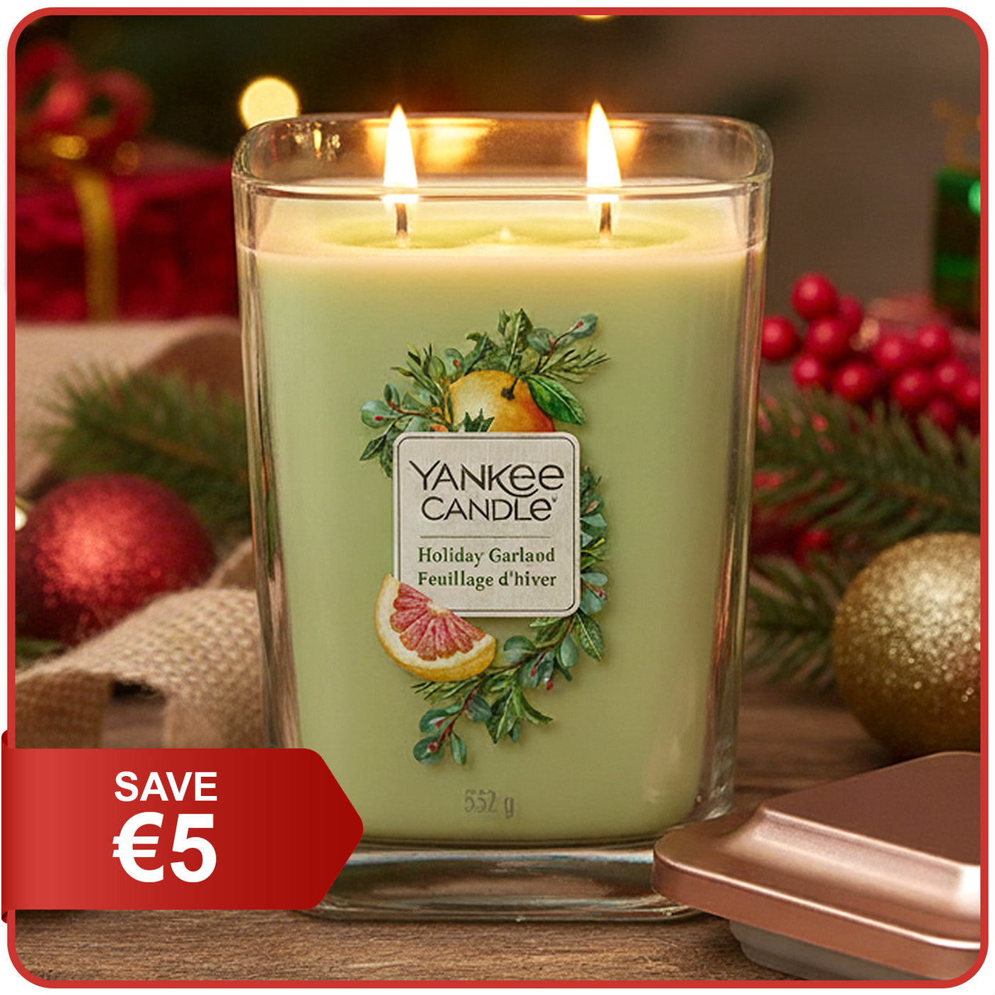 Celebrate the festive season with the Yankee Candle Elevation Collection Large Candle (552g) in Holiday Garland. Infused with the warm, inviting scent of fresh pine, evergreen, and seasonal spices, this candle brings the essence of holiday cheer into your home. Housed in a sleek glass jar with a stylish lid that doubles as a base, it provides a clean, long-lasting burn. Perfect for creating a cozy holiday atmosphere or gifting to loved ones!