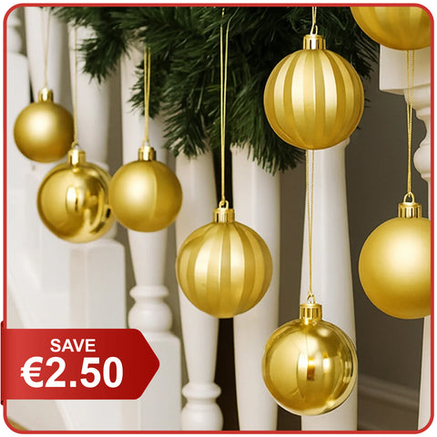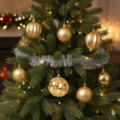 Add a touch of timeless elegance to your festive decor with this Pack of 35 Mixed Gold Baubles. Perfect for creating a luxurious and coordinated look, these baubles come in a variety of finishes including matte, shiny, and glitter for a rich, textured effect. Whether you're decorating your tree, wreaths, or garlands, these classic gold ornaments bring warmth and sparkle to any holiday setting.