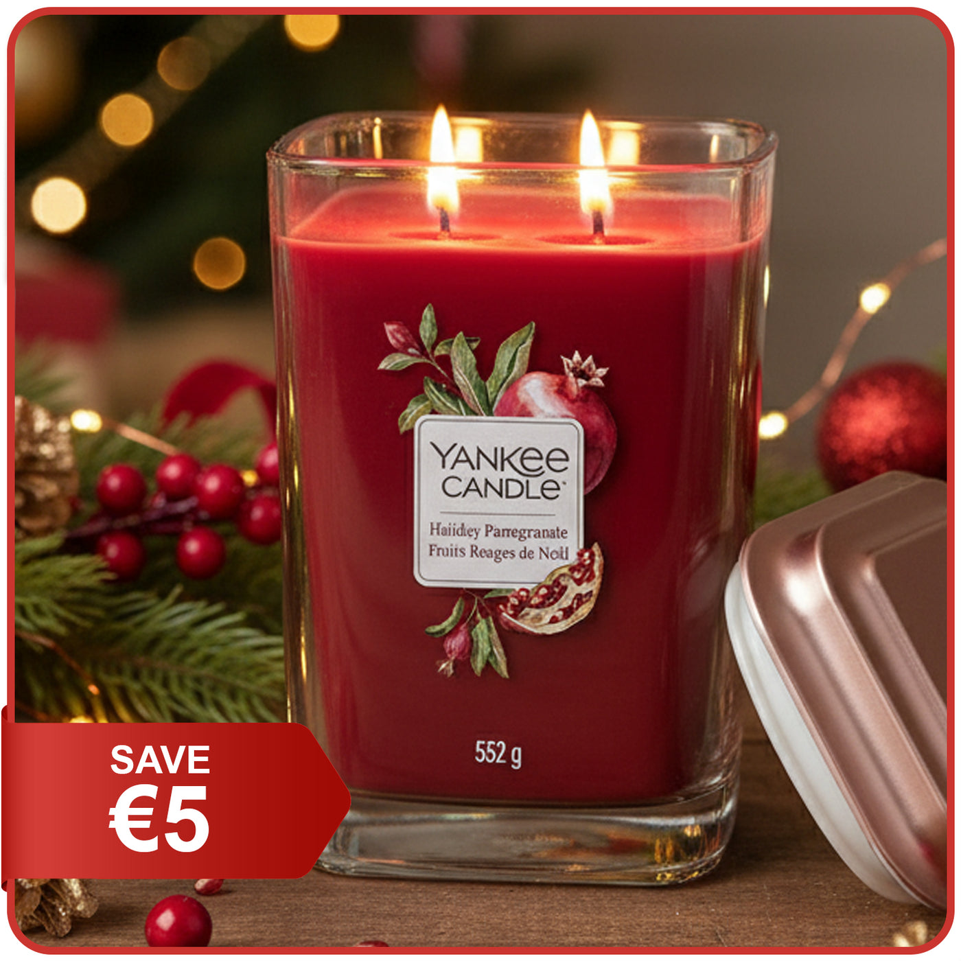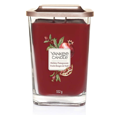 Brighten up your home with the festive and fruity scent of Holiday Pomegranate from the Yankee Candle Elevation Collection. This 552g large candle blends the rich aroma of ripe pomegranates with hints of winter spices, creating a warm and inviting holiday atmosphere. Designed with a sleek glass jar and a dual-purpose lid that serves as a base, it provides a clean, even burn for long-lasting fragrance. Perfect for holiday gatherings or as a seasonal gift!