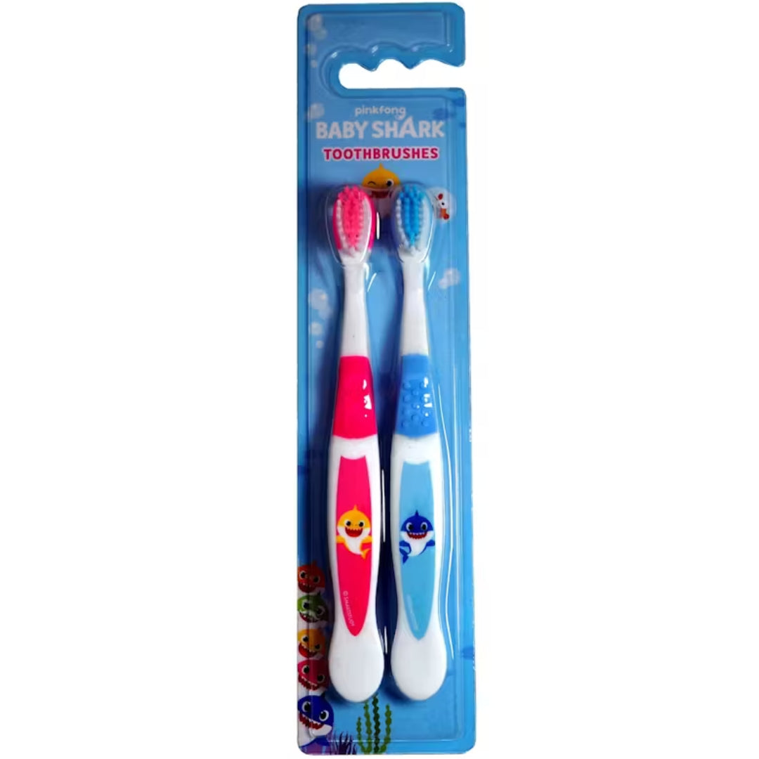 Make brushing fun with the Baby Shark Toothbrush Twin Pack! Designed for little hands, these soft-bristled toothbrushes are gentle on gums and perfect for encouraging good oral hygiene in toddlers and young children. Featuring colourful Baby Shark characters, they turn daily brushing into an exciting routine. Ideal for ages 3+.