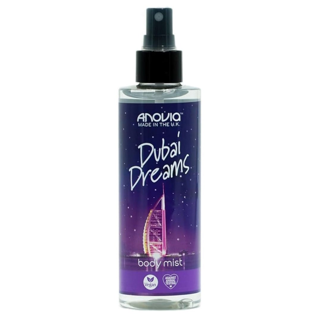 Indulge in luxurious scent with Anovia Dubai Dreams Body Mist 210ml, a captivating fragrance mist designed to leave your skin delicately perfumed all day. Infused with an exotic blend of rich, dreamy notes, this body mist refreshes and uplifts your senses with every spray. Perfect for daily use or special occasions, it adds a touch of elegance and sophistication to your beauty routine.