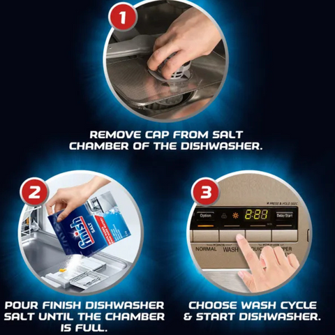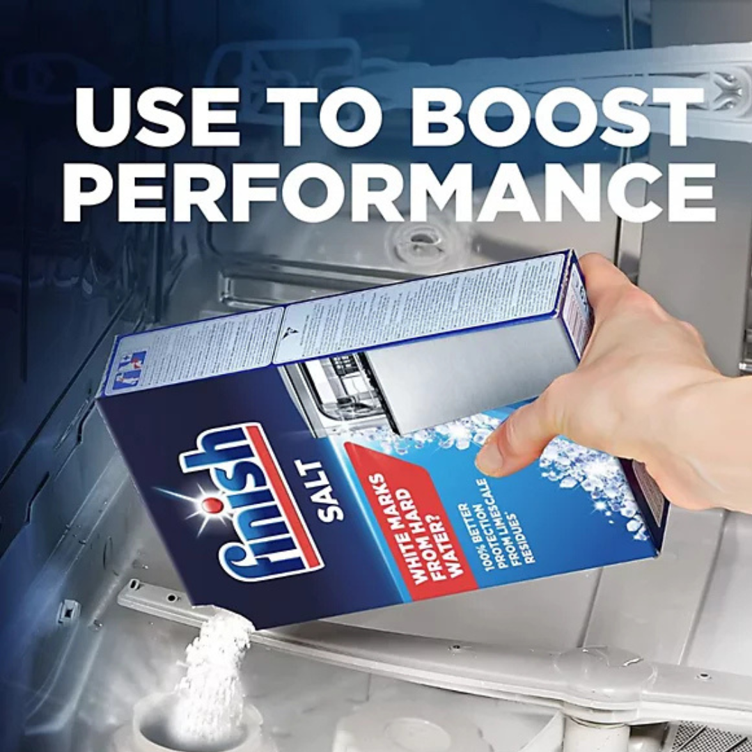 Achieve spotless, gleaming dishes with Finish Dishwasher Salt. This 1kg pack is designed to prevent limescale buildup and enhance your dishwasher's cleaning power. By softening hard water, it helps improve the effectiveness of your detergent, leaving your dishes sparkling clean and free from watermarks. Perfect for extending the life of your dishwasher, this salt ensures optimal performance and flawless results every time.