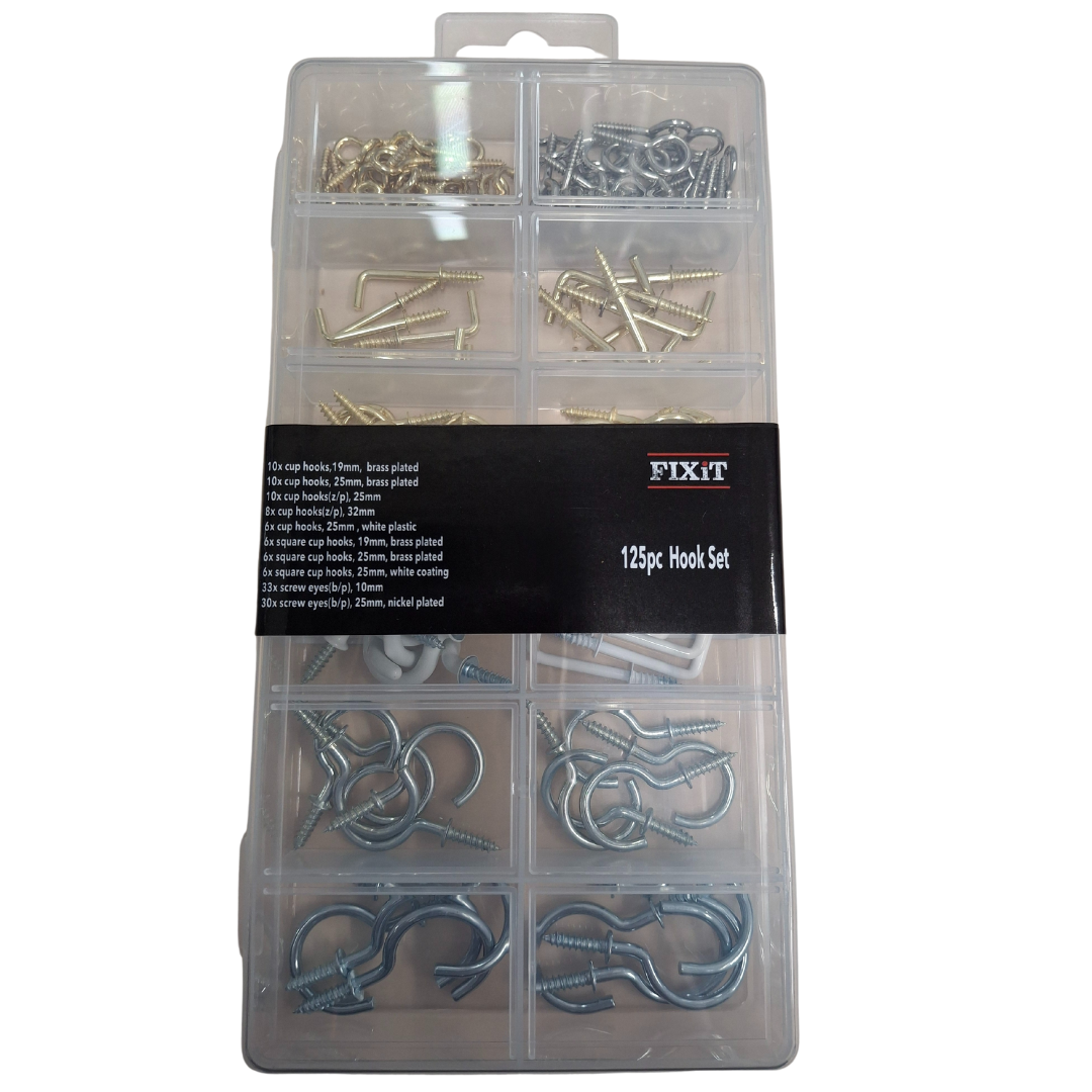 Organize your space with this 125-Piece Assorted Hooks Set. This set includes a variety of hooks in different sizes and styles, perfect for hanging items such as keys, towels, coats, and more. Made from durable materials, these hooks are ideal for use in your home, office, or garage, offering versatile and reliable solutions for all your hanging needs.