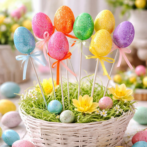 Add a festive touch to your displays with Easter 8 Egg Pick Decorations. This set includes eight decorative egg picks, perfect for enhancing floral arrangements, table centrepieces, gift baskets, or Easter-themed crafts. Lightweight and easy to place, they bring colour and seasonal charm to any celebration. A simple and cheerful way to brighten up your Easter décor.