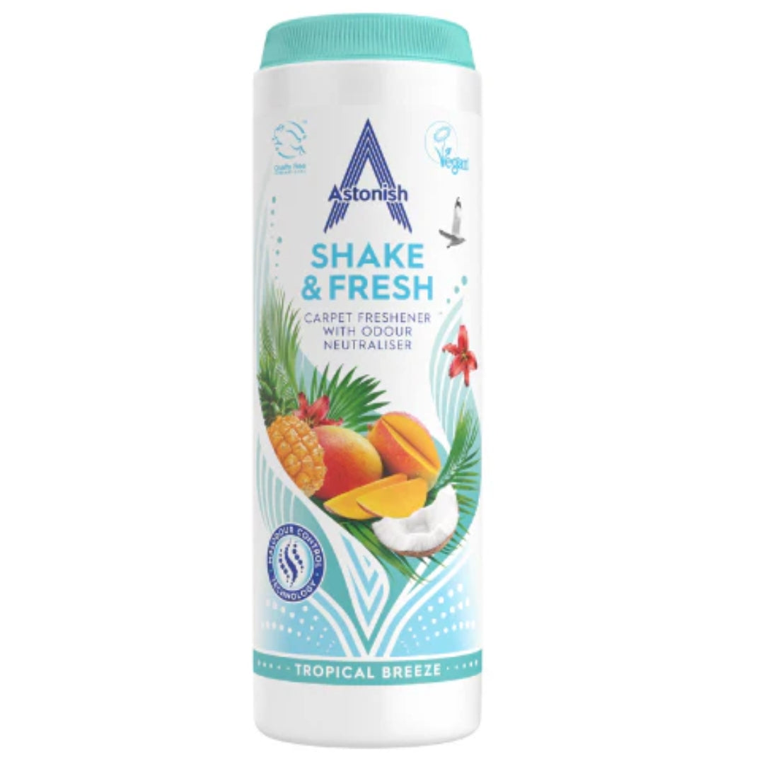 Bring the scent of paradise into your home with Shake & Fresh Tropical Breeze 350g. This powerful air freshener and odour neutraliser releases a refreshing tropical fragrance that instantly revitalizes any room. Perfect for carpets, bins, upholstery, and pet areas, just shake, leave, and enjoy long-lasting freshness. Easy to use and ideal for daily deodorizing.