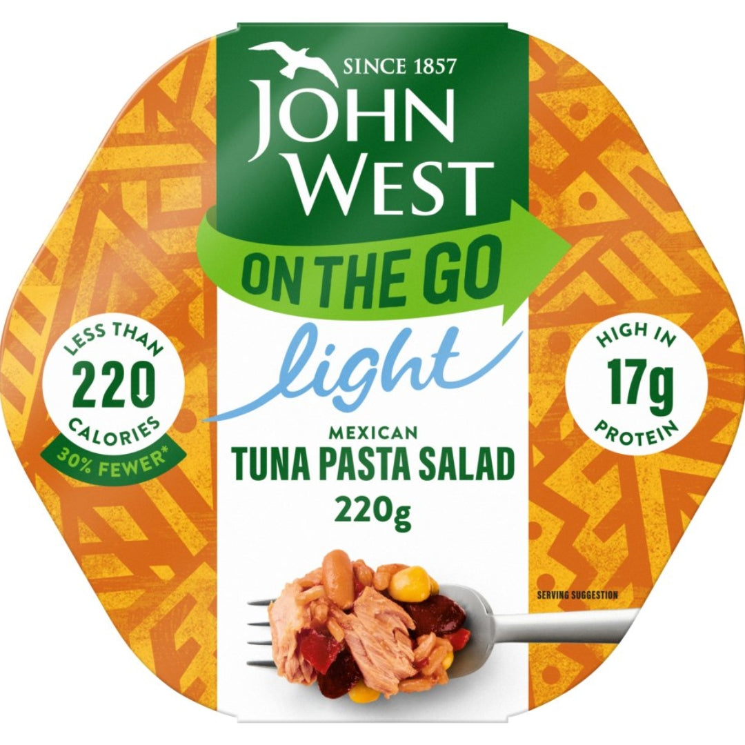 BBE: 06/2027Spice up your lunch break with a taste of Mexico! John West Tuna Light Lunch Mexican Style is a deliciously convenient, ready-to-eat tuna salad that brings bold, zesty flavours to your day — wherever you are. Each pack combines juicy chunks of wild-caught tuna with a colourful mix of pasta, red kidney beans, sweetcorn, and crunchy vegetables, all coated in a tangy Mexican-style dressing with a hint of mild spice.