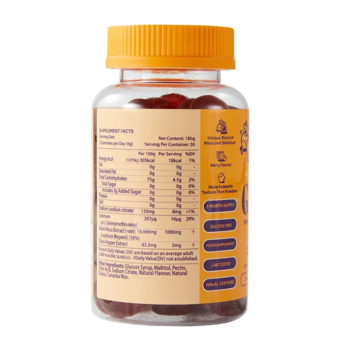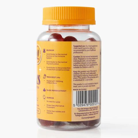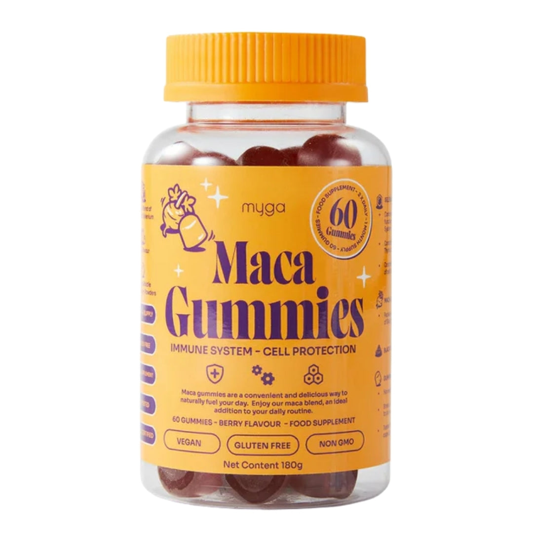 Naturally support your energy and balance with our Myga Maca Gummies, a blend of black maca root, selenium and black pepper extract in a juicy berry flavour. These easy to take gummies are a stress free way to add this traditional plant to your daily wellness routine.