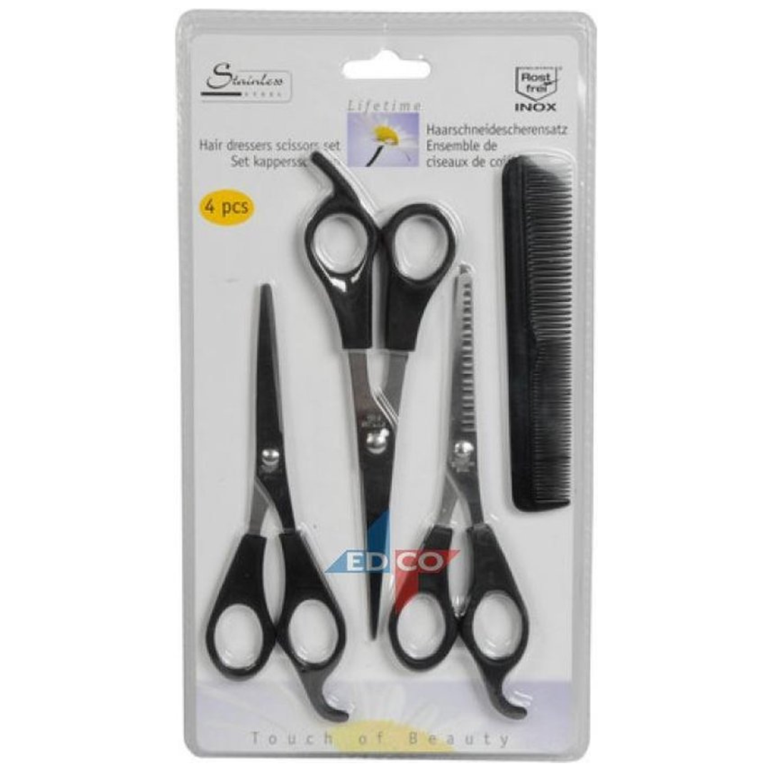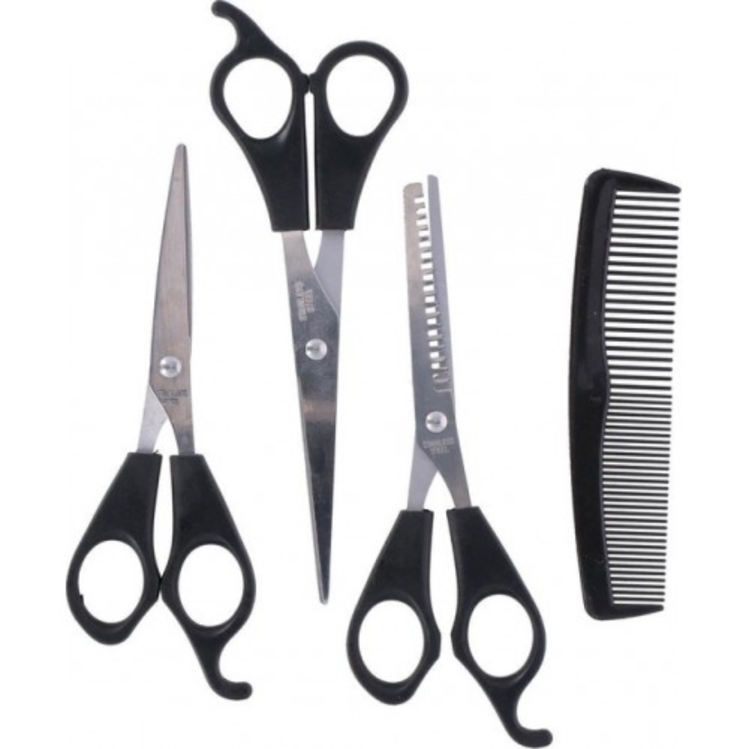 Key Features:✔️ Professional hair-cutting kit – includes scissors, thinning shears & comb✔️ Sharp stainless steel blades for precision cutting✔️ Ergonomic handle design for comfort & easy control✔️ Thinning shears for layering & texturizing hair✔️ Perfect for all hair types – home & professional use