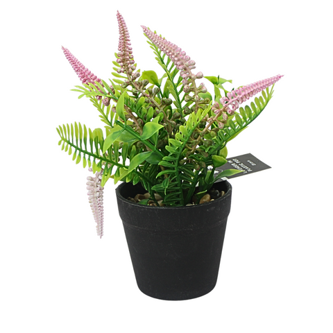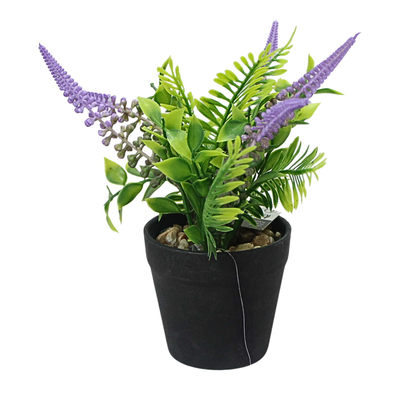 Bring a touch of timeless charm to your home or office with this 24cm Artificial Lavender Plant in Pot. Designed to mimic the delicate beauty of real lavender, this realistic faux floral adds a splash of colour and freshness without any maintenance. Housed in a sleek decorative pot, it's perfect for shelves, desks, windowsills, or as a centrepiece. Ideal for allergy-friendly décor and year-round beauty – no watering required!