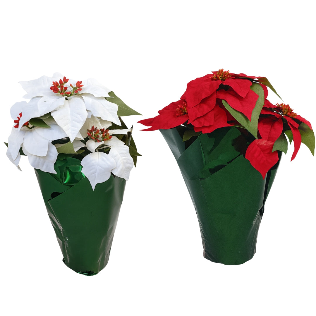 Bring festive charm to your home with the Potted Red and White Poinsettia, a classic holiday plant that adds seasonal warmth and elegance. Featuring vibrant red and white blooms with lush green leaves, this poinsettia comes in a decorative pot, ready to display on tables, windowsills, or entryways. Perfect for brightening up Christmas décor or gifting to loved ones, it’s a timeless symbol of the holiday season. Low-maintenance and long-lasting, the Potted Poinsettia makes a cheerful addition to any festive setting.
