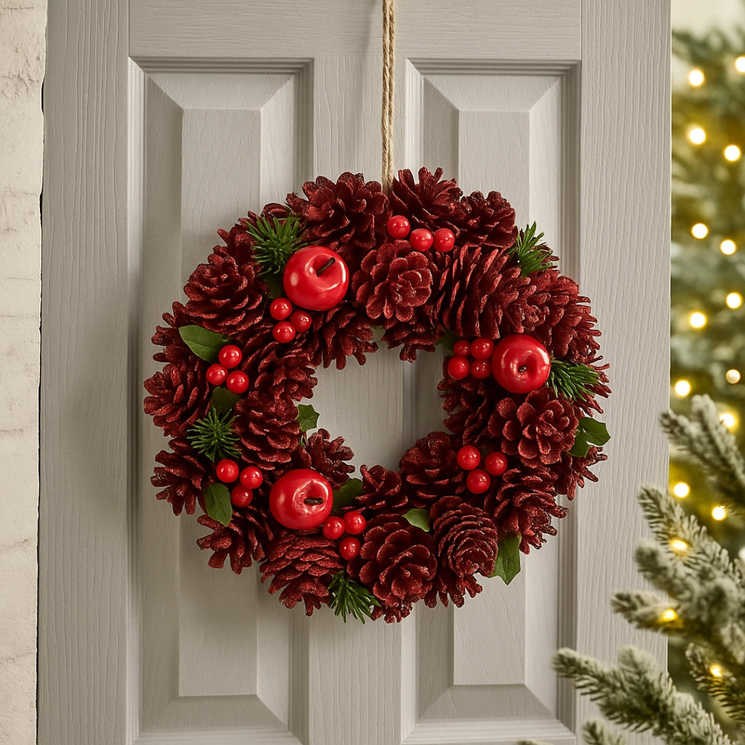 ring festive charm to your home with this 26cm Red Pine Cone Wreath. Crafted with natural pine cones and vibrant red accents, it's perfect for doors, walls, or holiday centerpieces. Compact in size and full of seasonal flair, it's a beautiful addition to your Christmas décor.