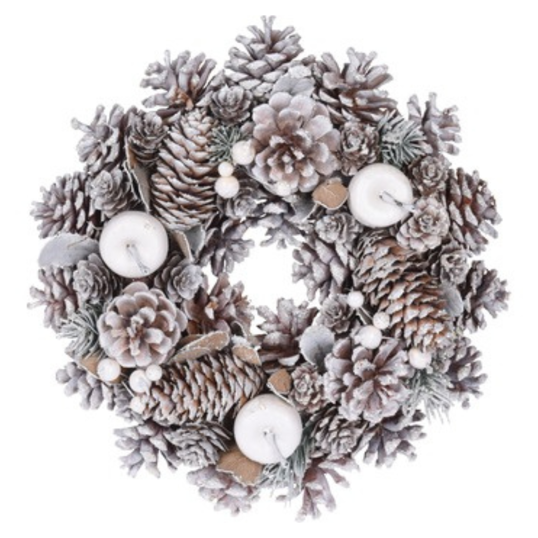 White 26cm Pine Cone Wreath – Elegant Winter Charm for Your Home