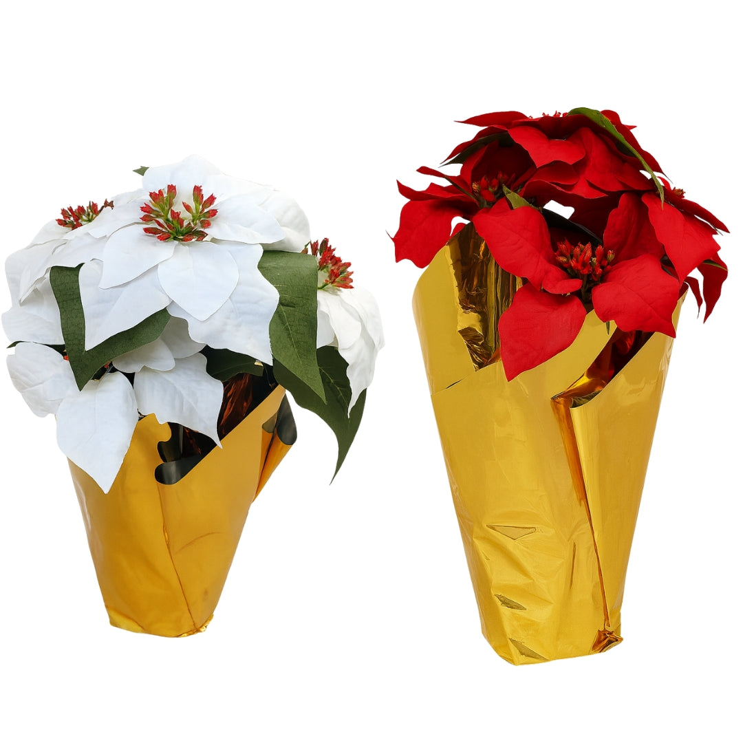 Celebrate the festive season with the White and Red Potted Poinsettia, a holiday favourite that brings warmth and elegance to any space. Featuring striking red and white blooms complemented by rich green foliage, this poinsettia comes in a decorative pot, ready to display on tables, mantels, or windowsills. Perfect for adding seasonal cheer to your home or as a thoughtful Christmas gift, it’s a timeless symbol of holiday joy. Easy to care for and long-lasting, the White and Red Potted Poinsettia is a must-have for festive décor.