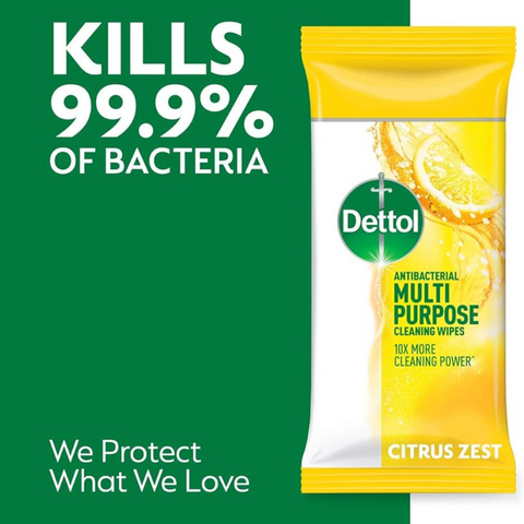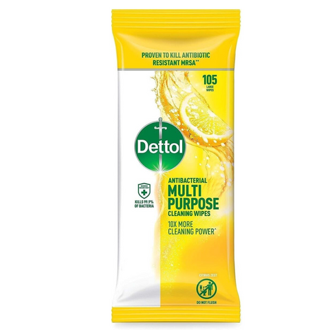 Keep your home fresh and hygienic with Dettol Antibacterial Multi-Purpose Wipes Citrus Zest. This pack of 105 wipes offers powerful antibacterial protection while leaving behind a refreshing citrus scent. Ideal for cleaning and disinfecting surfaces around your home, these wipes remove dirt, grease, and 99.9% of bacteria, ensuring a clean and safe environment. Convenient, easy-to-use, and gentle on most surfaces, these wipes are perfect for quick, everyday cleaning tasks.