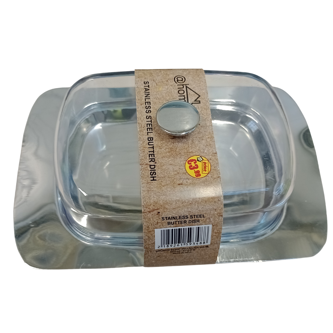 Keep butter fresh and stylishly stored with this stainless steel butter dish. Designed with a sleek, modern finish, it features a fitted lid to maintain freshness and a spacious interior to accommodate most butter sizes. Durable, rust-resistant, and easy to clean, this dish is a practical and elegant addition to any kitchen or dining table.