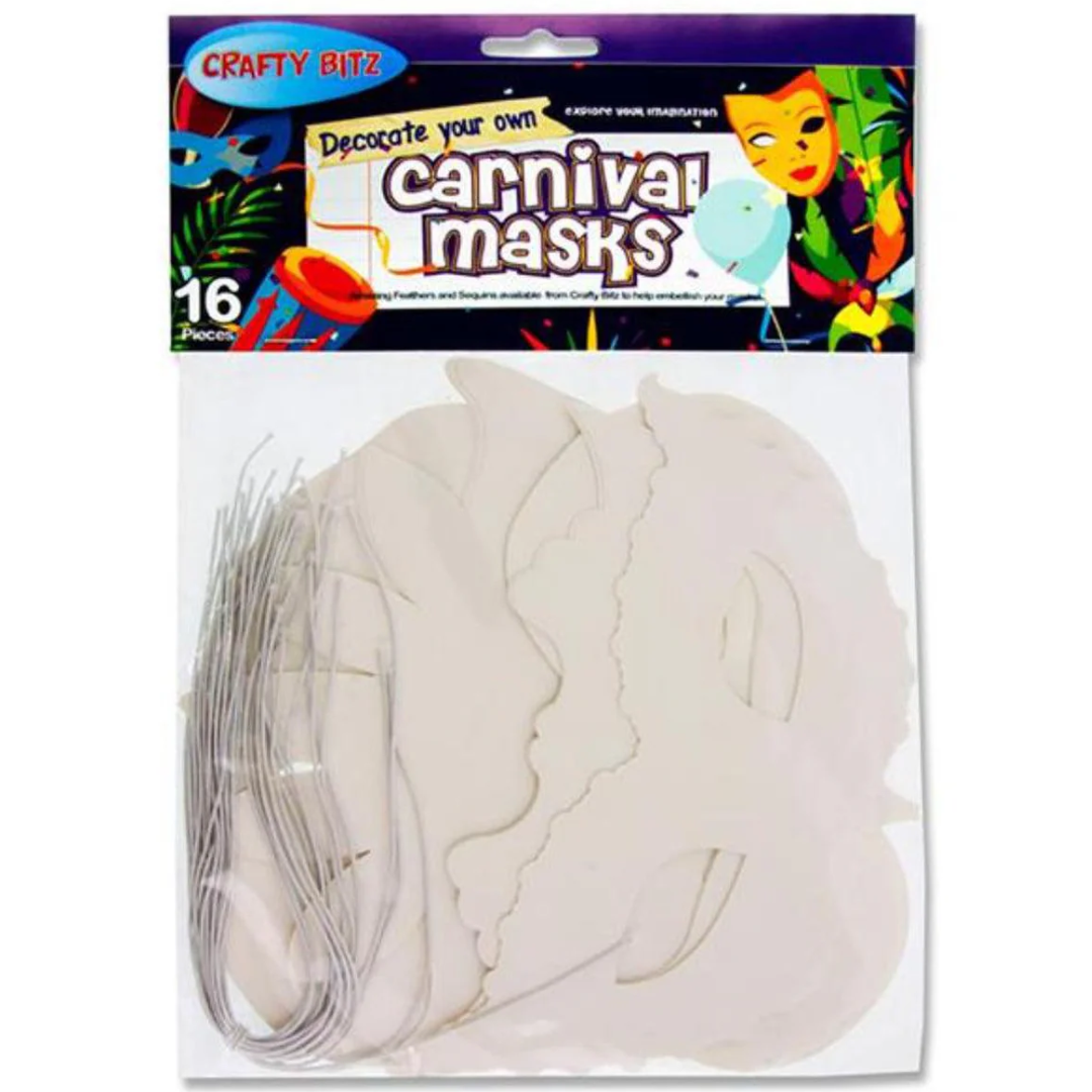 Unleash creativity with the Crafty Bitz Pack of 16 Carnival Masks. Perfect for parties and DIY crafts, these blank masks are ready to be decorated, allowing kids to design their own unique carnival look!