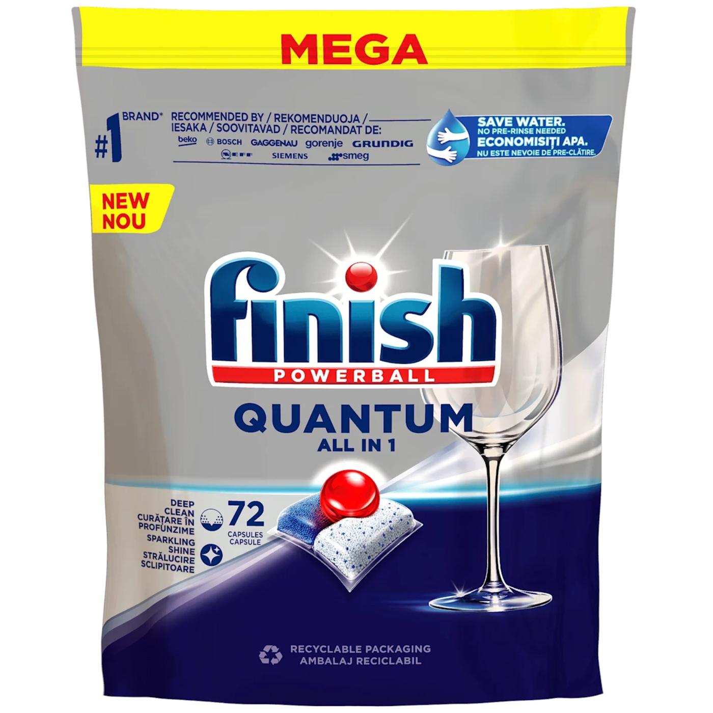 Experience unbeatable dishwashing power with the Finish Quantum Dishwasher Tablets 72 Pack, designed to tackle even the toughest stains for a sparkling clean every time. Each tablet features a triple-chamber formula that cuts through grease, breaks down stuck-on food, and delivers a brilliant shine. With built-in glass protection and powerful degreasing action, the Finish Quantum Dishwasher Tablets leave dishes spotless, ensuring premium cleaning performance in every wash.