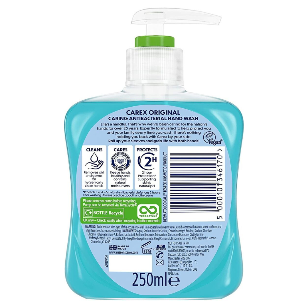 Keep your hands clean and refreshed with Carex Hand Wash Original (250ml). This trusted formula is designed to effectively remove dirt and germs while providing a fresh, clean scent. Perfect for everyday use, it helps maintain hygiene without drying out your skin. Ideal for the bathroom or kitchen, Carex Hand Wash Original leaves your hands feeling soft, clean, and gently moisturised with each wash.