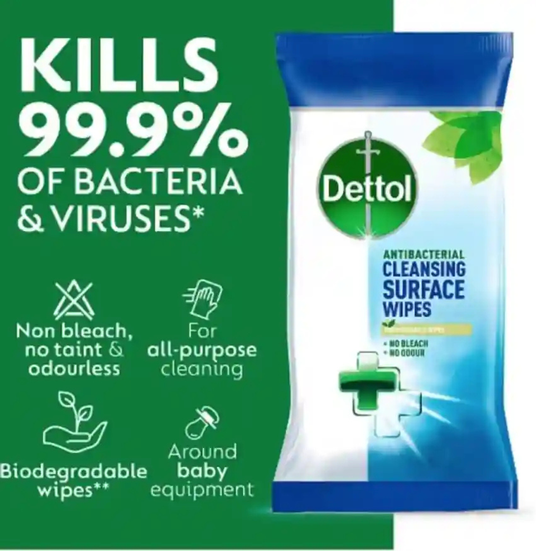 Ensure a cleaner, healthier home with Dettol Surface Wipes. These convenient, pre-moistened wipes are perfect for disinfecting surfaces quickly and effectively. Ideal for use in kitchens, bathrooms, and on high-touch areas, they help eliminate bacteria and viruses, leaving your home fresh and hygienic. With a streak-free finish and a pleasant scent, these wipes offer a simple solution to daily cleaning, providing peace of mind and a healthier environment with every use.