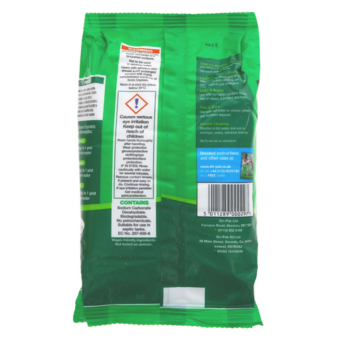 Dri-Pak Soda Crystals are a traditional and versatile cleaning product with a 200-year heritage. Ideal for laundry, they help shift heavy stains, soften hard water, and can be used as a pre-soak. In household cleaning, they effectively cut through grease on cookers, pans, and surfaces, and can unblock sinks and drains by dissolving grease. Additionally, regular use can prevent limescale build-up in washing machines, prolonging their lifespan. Made in the UK, these biodegradable crystals contain no petrochemicals and are suitable for use in septic tanks.